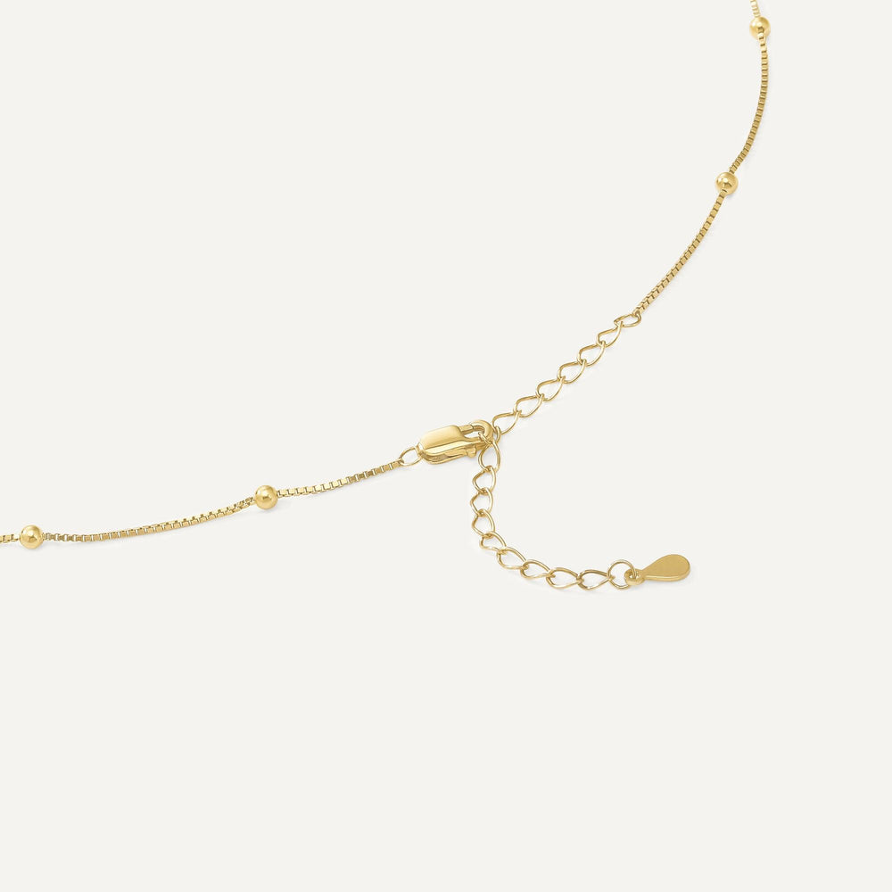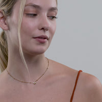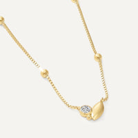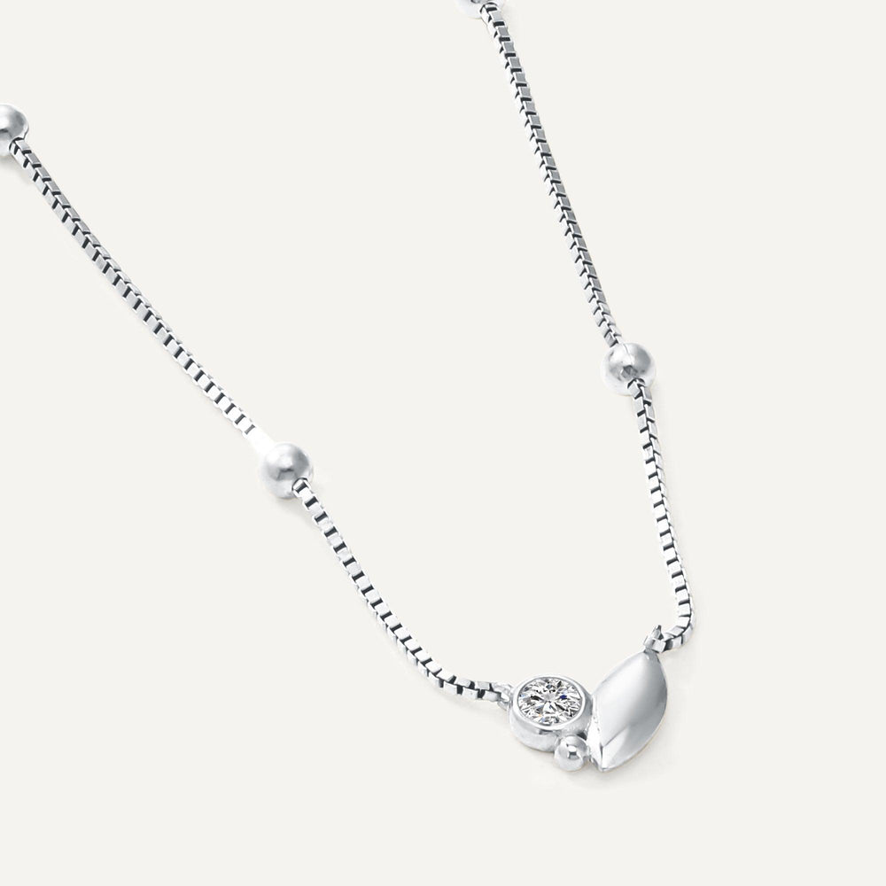 This delicate bead Atwells chain necklace features our signature polished pod shape aside a diamond solitaire.
