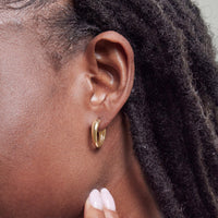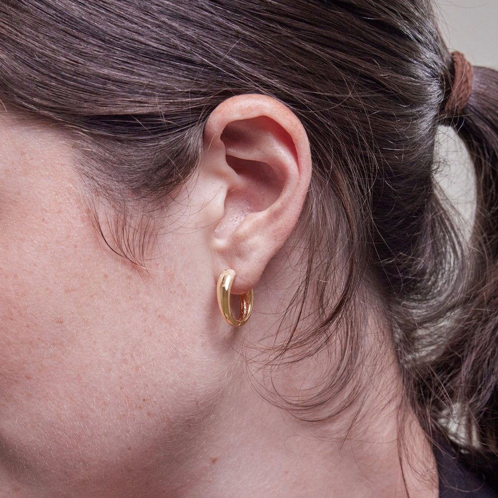 Our Hadley huggie hoop earring adds sculptured polish to any outfit.