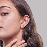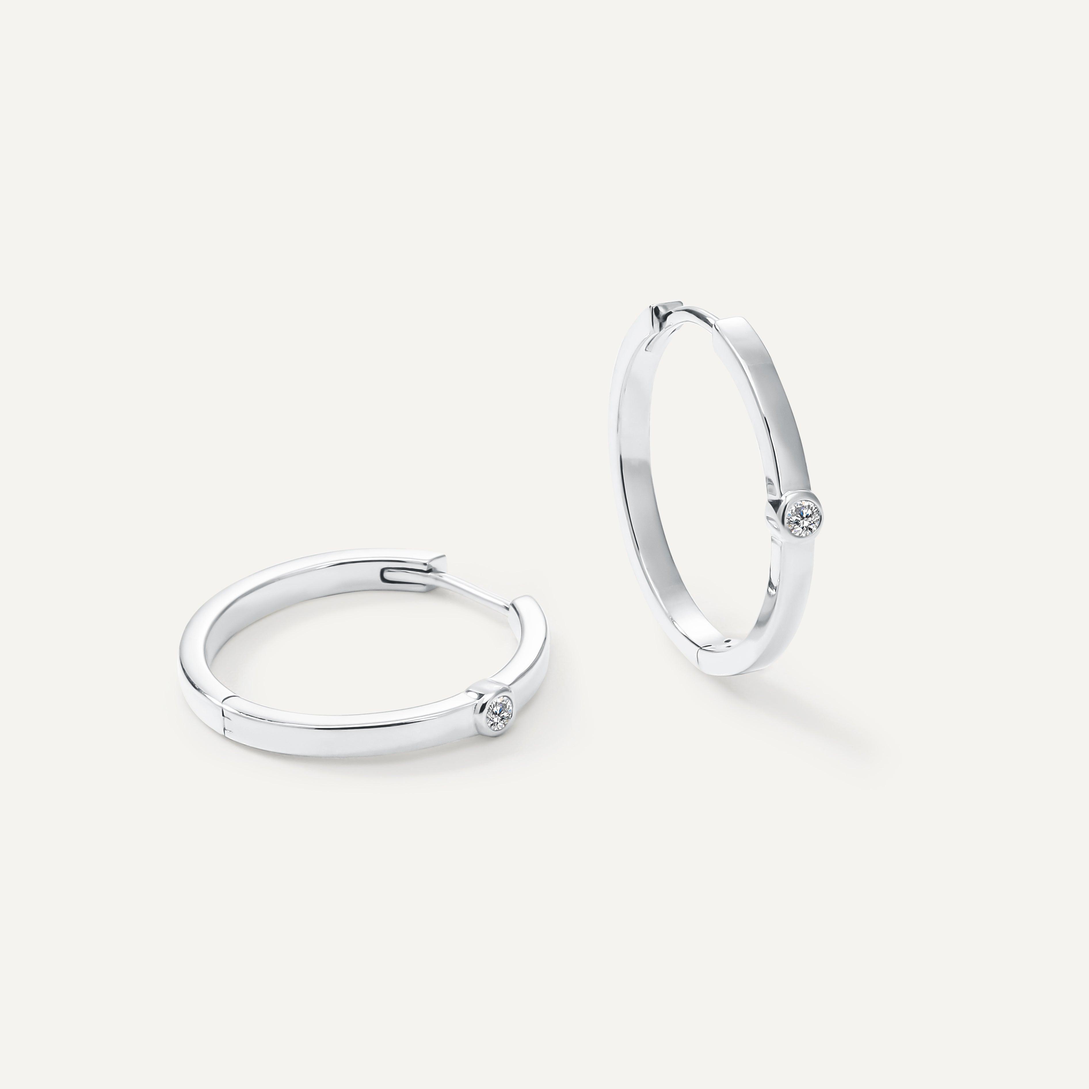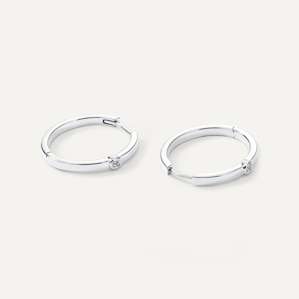 Sleek and modern, our 20mm Sutton earrings featurs polished huggies with bezel set diamonds.