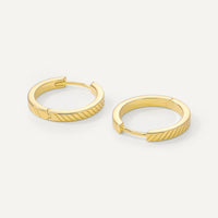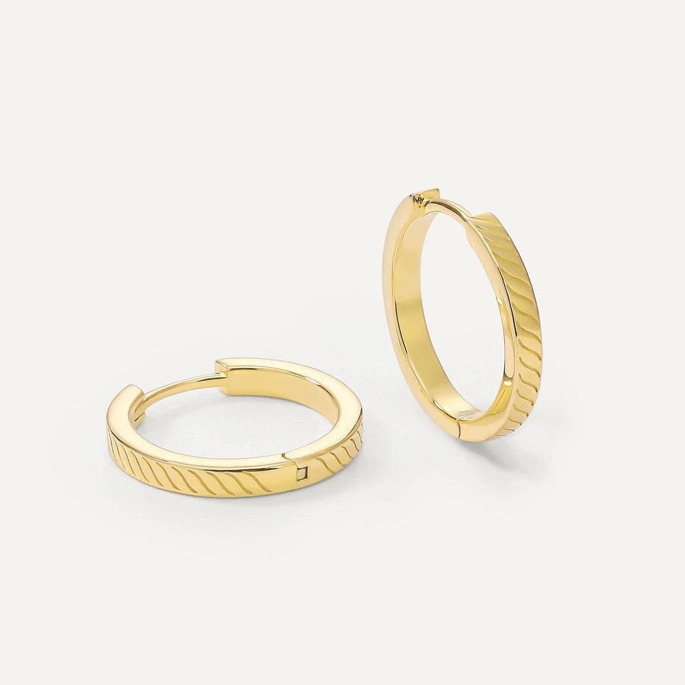 Our 15mm Nora earrings are huggie hoops with a textured touch.
