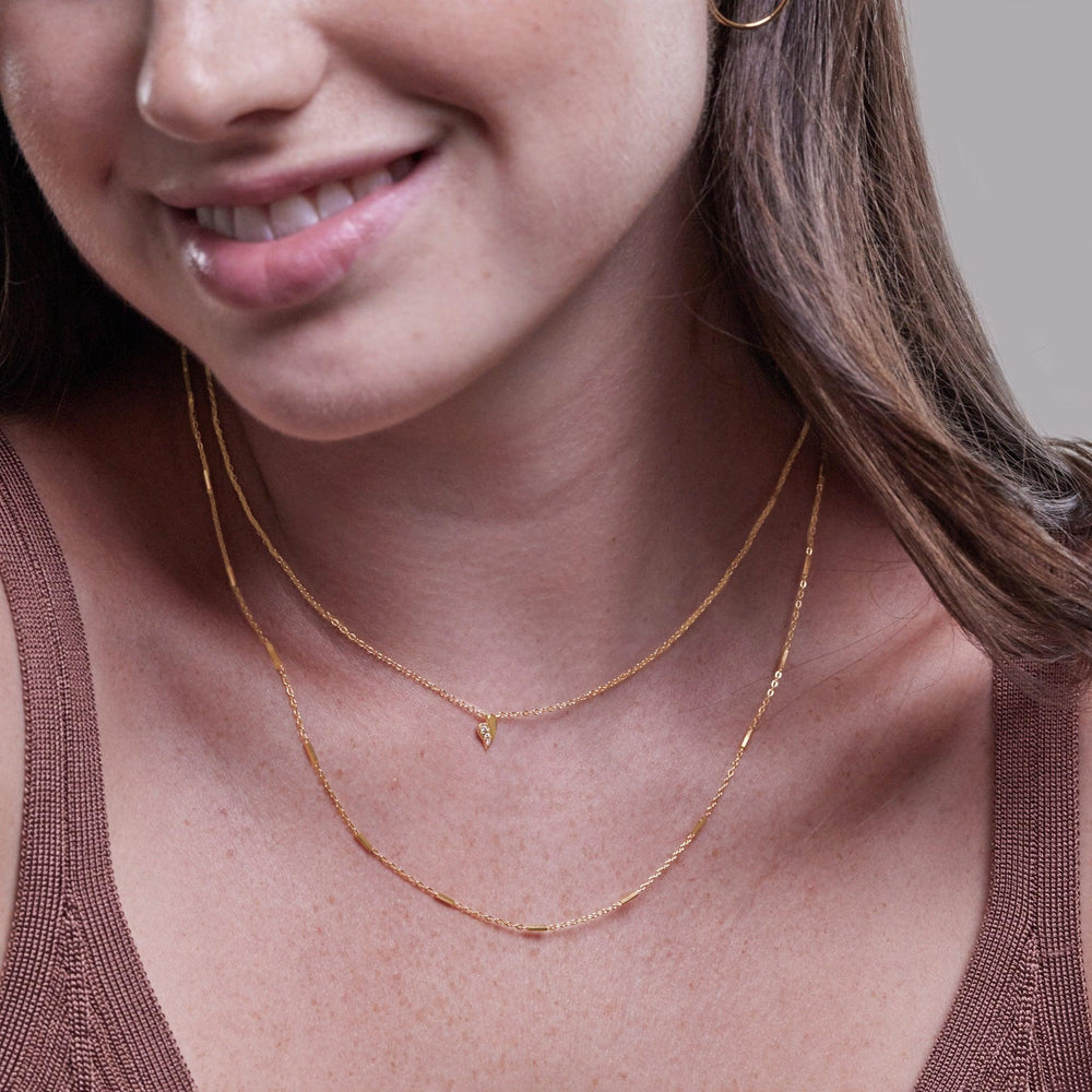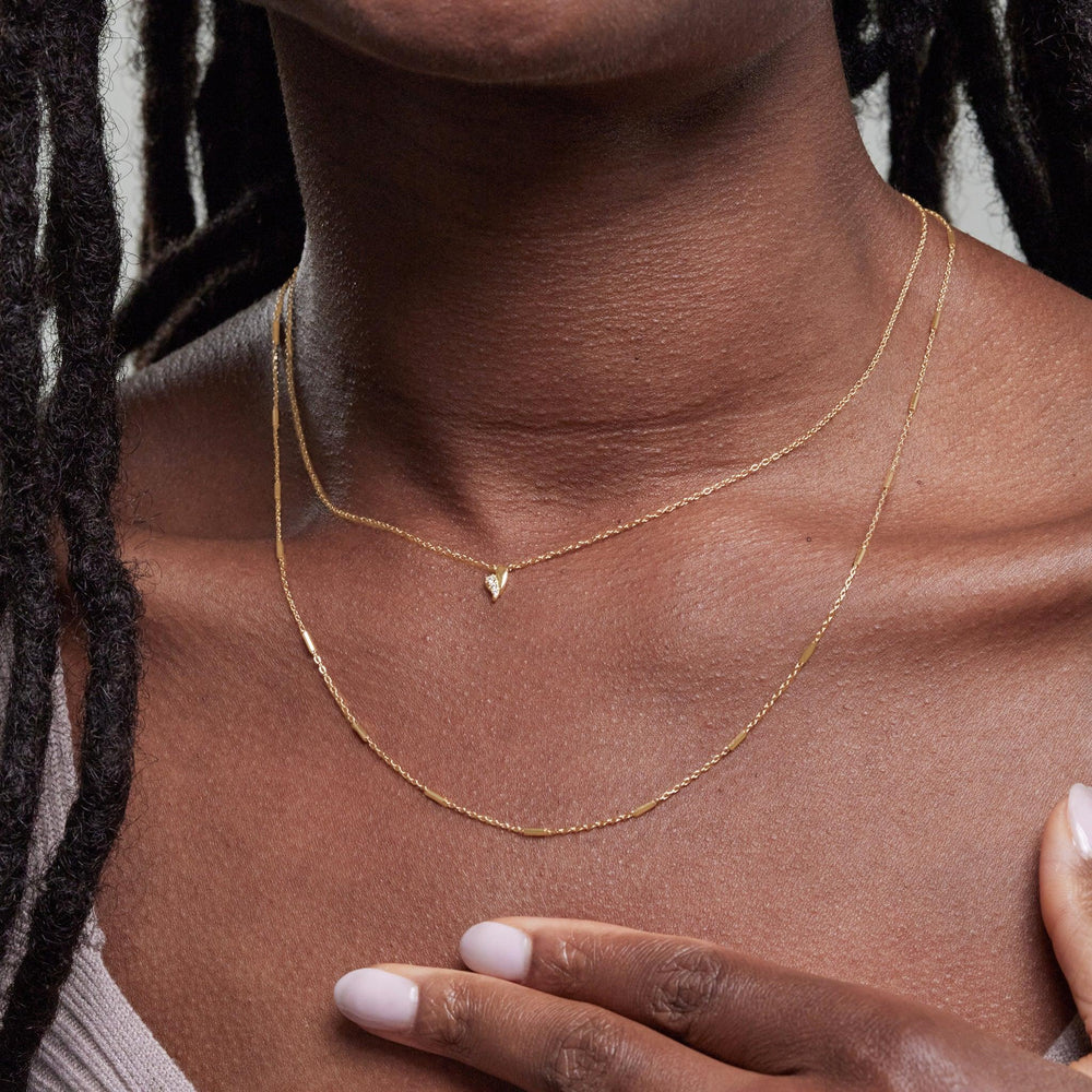 A sculptured diamond heart is the centerpiece of our Ophelia necklace.