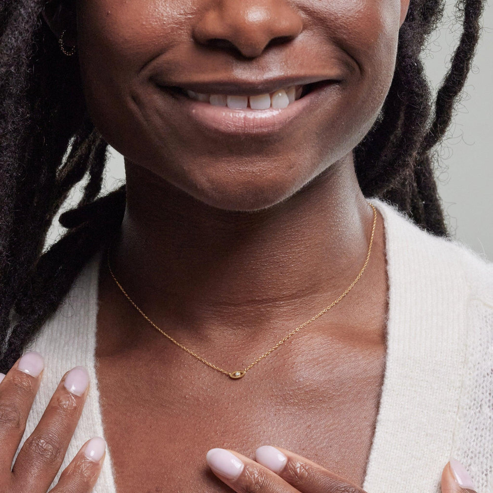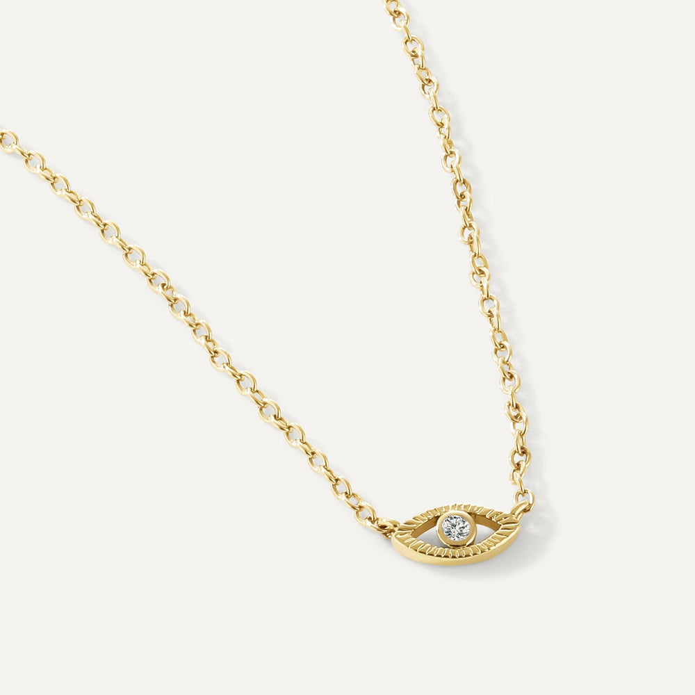 Protect yourself with the diamond accented evil-eye on our Addison necklace.