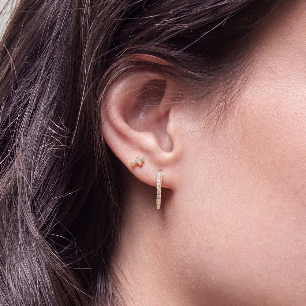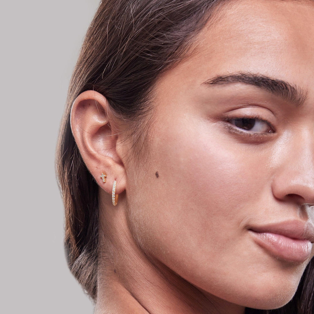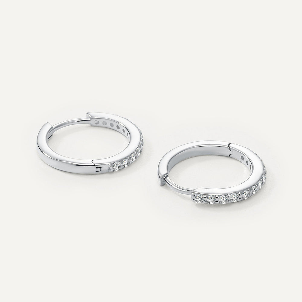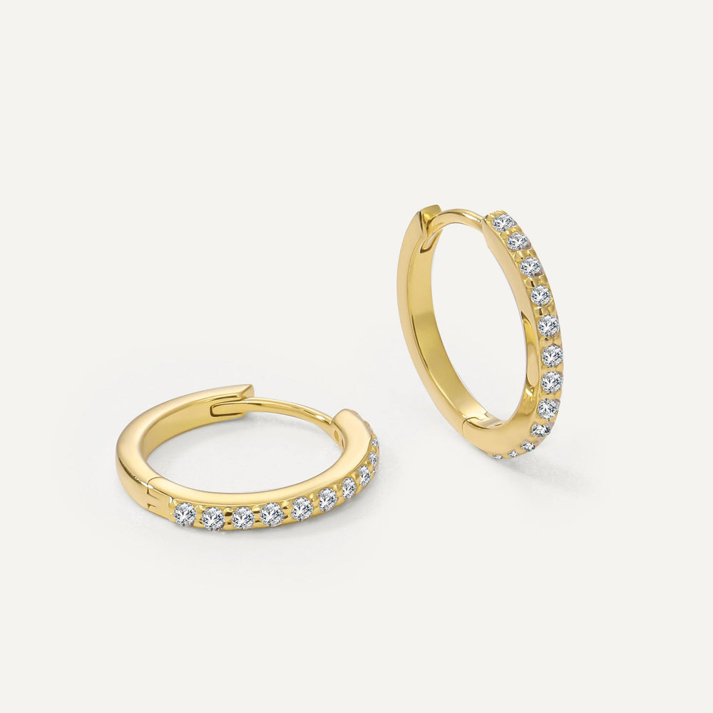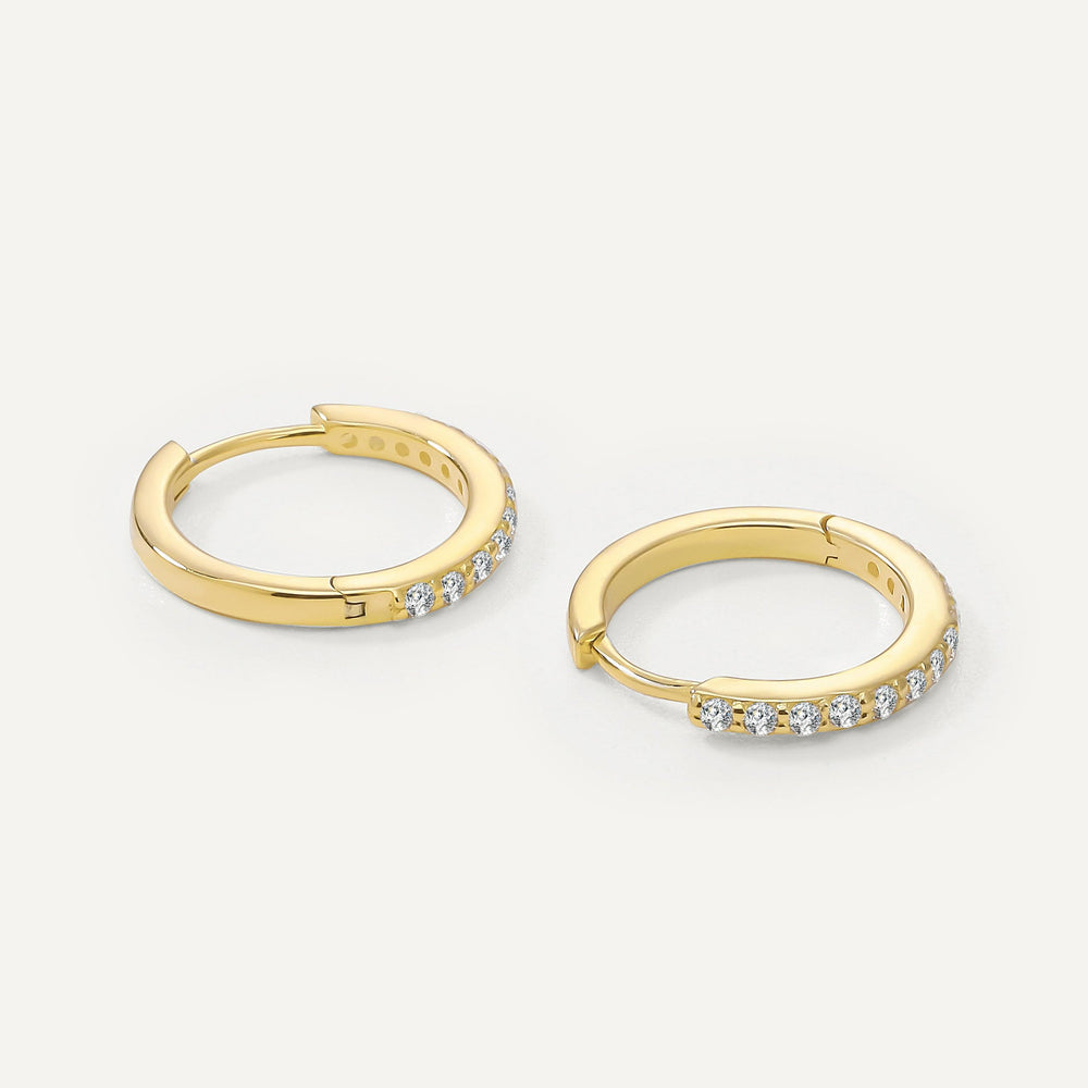 Delicate and glamorous, our 15mm Morgan earrings are the perfect pavé diamond huggie hoops.