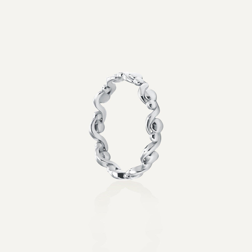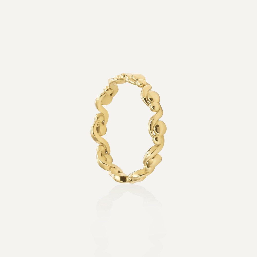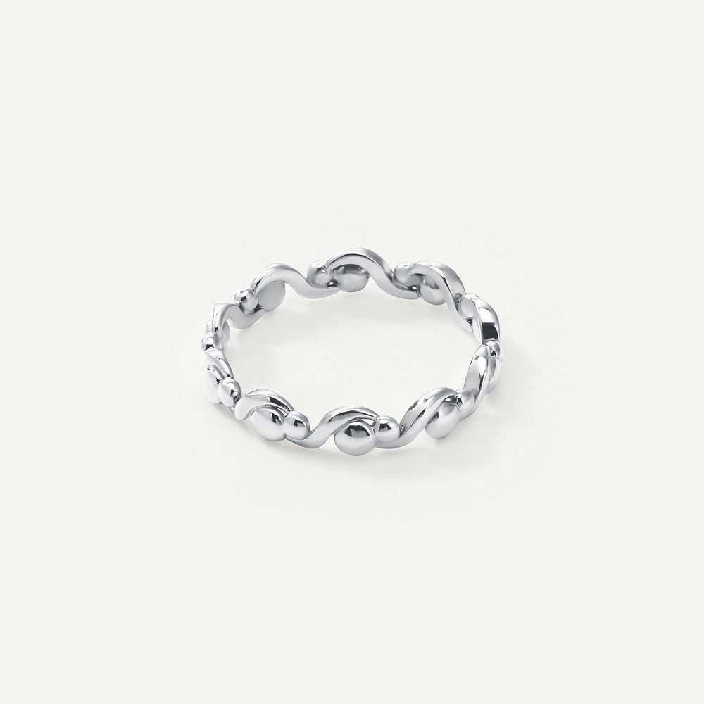 Our Sariah ring is a new classic, featuring wave and pebble shapes throughout the band.