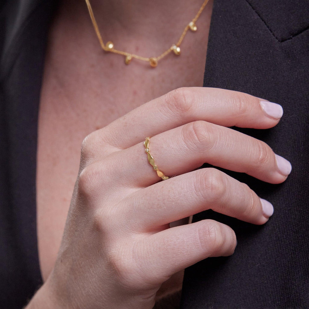 Wear our gold and diamond Yasmin band alone or layered with our other stackable styles.