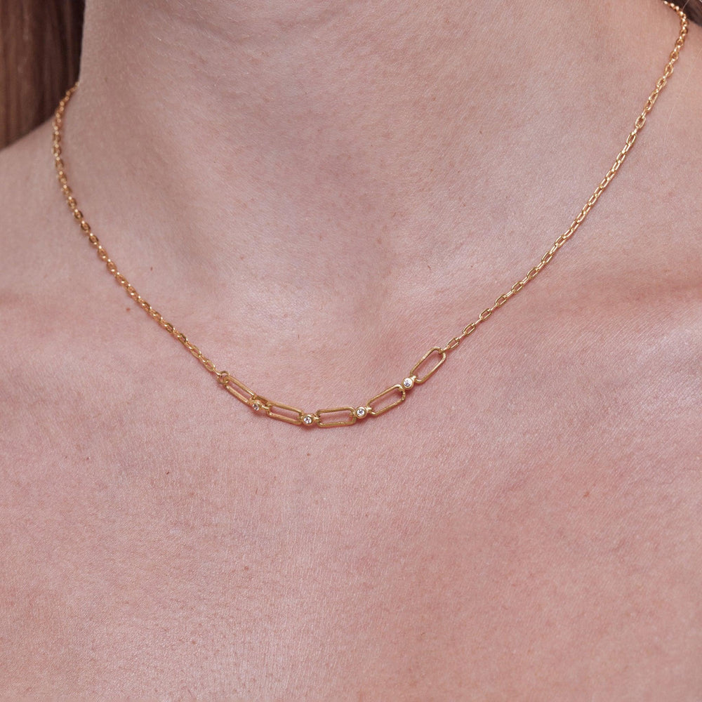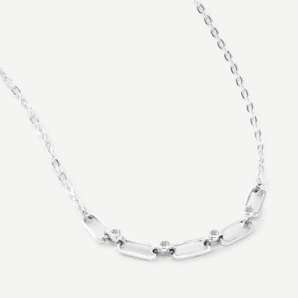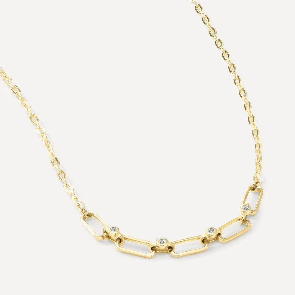 Open links and a diamond accents form a fabulous flourish to the front of our fine chained Easton Necklace.