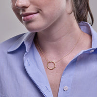 Diamonds delicately orbit our open circle Holland necklace for a polished and refined look.